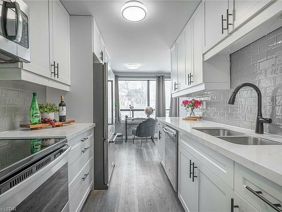 Don't miss out on owning this 2 bedroom move-in ready condo or use it as an investment property. A spacious unit featuring a living room, kitchen with dining area, 4-pc bathroom, in suite laundry, ample storage and closet space. This beautiful unit has had many recent upgrades in Feb 2020 including new kitchen cabinets with large pantry and quartz countertop, luxury vinyl plank flooring, bathroom, lights, stainless steel kitchen appliances and upgraded doors. This building is in a prime location with being next door to plaza with grocery store and restaurants. Close to Western University and Fanshawe College, transit and downtown. You can go for a walk in historic Old North. Just when you think it couldn't get better, the hot water heater is owned and the condo fee includes water!