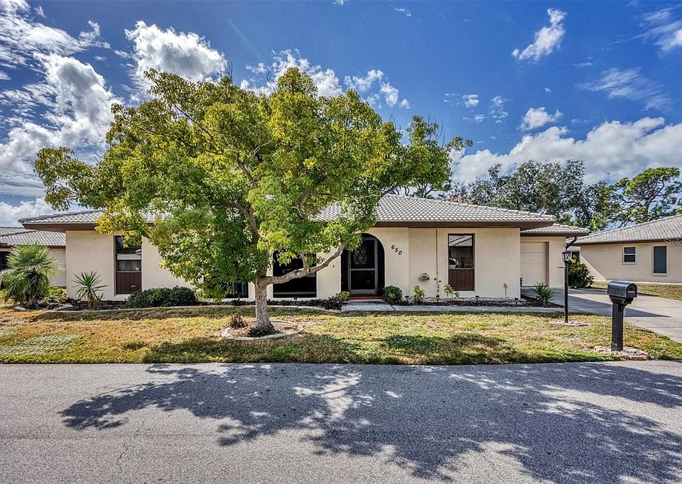 Almost 2000 square feet! This spacious home has two large bedrooms both with walk-in closet and a den with a closet, making it perfect as a third bedroom or home office. The large great room features custom built-in shelving and a soaring cathedral ceiling, creating an open and inviting space for relaxing or entertaining. A generous kitchen provides abundant cabinet storage and plenty of workspace for cooking enthusiasts. Enjoy natural light year round in the bright sunroom, or gather in the separate dining room for meals and special occasions. With two full bathrooms, and thoughtful floor plan, this home is designed for everyday living and hosting guests with ease. Ideally located just minutes from Nokomis Beach, Sarasota, and I-75, you'll have quick access to shopping, dining, and the area's beautiful coastline. The homeowners association takes care of exterior maintenance, lawn care, roof replacement and repair, and INSURANCE for the structure, offering peace of mind and low-maintenance lifestyle at a fantastic price. What are you waiting for? Schedule your tour and start living the Florida lifestyle today!