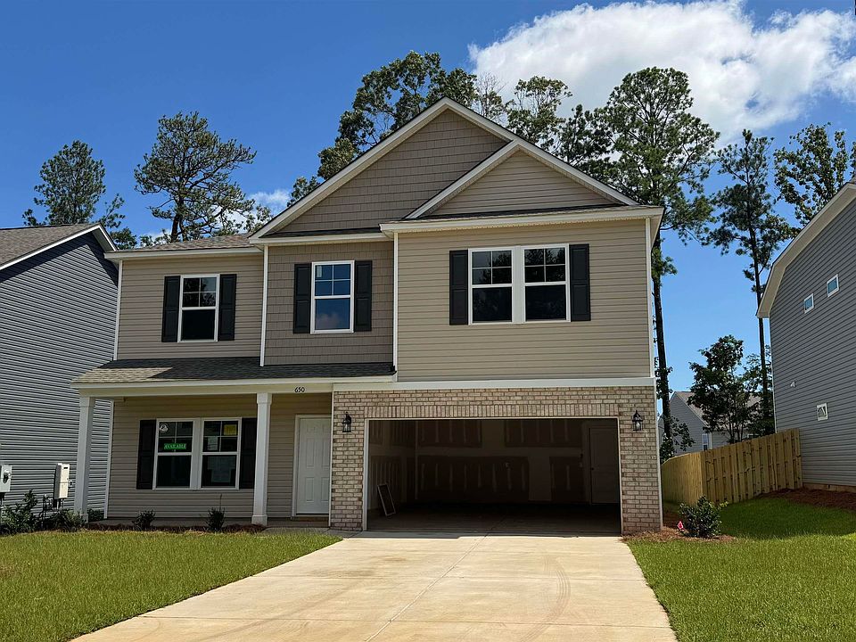 Carrington - Bradley II - elevation B on Lot #110, is a fabulous 5 BR, 3 Bath plan with 9-foot ceilings on the main level, This 3,040 SF home features an open floor plan concept including, a spacious Living Room, large Kitchen, and Formal Dining Room. The main level 5th Bedroom option has a Full Bath for guests, or can be used as an office. The upper level features a large Owner's Suite with large his & her closets, double vanity, tiled separate shower & garden tub, and private water closet, There are also a huge loft, three additional bedrooms, and full bath. Options included in this house are luxury vinyl plank flooring in the foyer, office, kitchen, living room, dining room, garage entry, baths, and laundry; fixtures; kitchen island; White Shaker Cabinets and Granite countertops, tile backsplash; sprinklers in front and back, tankless water heater and more. Neighborhood has a community pool, playground and cabana. Photos are stock photos, colors, specifications and options will vary. SELLER WILL PAY UP TO $15,000 TOWARDS RATE BY DOWN OR CLOSING COSTS/PREPAIDS WITH HOMEOWNERS MORTGAGE. Home is currently under construction call agent for details as completion date is expected toward the end of August. Ask us how we can save up to $400/month on your payments with our lender