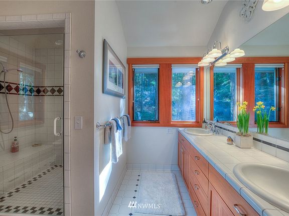 Stunning waterfront home, new shared dock w/ a SW panorama over Obstruction, Orcas & Lopez. Immaculate 4 bed home + carport w/ 'picture perfect' vistas from almost every room + multiple spacious decks. On 3 acres in Deer Point, this multi-level design has landscaped fenced yard, vaulted ceilings, oak floors, stone fireplace, library w/ cherry bookcases, office, high speed fiber optic internet, sun-filled kitchen breakfast nook + inviting master suite w/ sitting area, work shop plus carport!