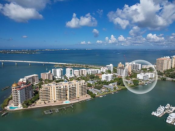 Attention Boaters: This chic contemporary residence located on Golden Gate Point has it all - unobstructed views of Sarasota's downtown city skyline, a captivating waterfront and Marina Jacks, and includes a highly coveted deeded deep-water boat slip that will accommodate up to a 40 ft boat! Also included is a high capacity Deco Concept 20,000 pound lift. Harbor View on Golden Gate Point is a gated boutique condominium, with an award-winning exterior renovation that was completed in 2017. The building consists of just 14 residences on Sarasota Harbor with a heated pool and spa overlooking the downtown waterfront. Located on the 5th floor, this much sought-after center unit features a split plan with two bedrooms, two and half baths, an office/den, and includes a secure private entry from the elevator that steps directly into the luxurious residence. An open living area with soaring views offers the ideal backdrop for entertaining where the kitchen is sure to delight the chef with Thermador appliances, including a gas range, wood cabinetry, granite counters and spacious island with seating. Gracious floor-to-ceiling windows allow light to pour in throughout the living space and two private balconies overlooking the Harbor offer picturesque settings to relax as you watch the sunrise over the city skyline. Bestowing true tranquility, the master suite grants serenity with a private balcony and en-suite bath. The guest bedroom also includes an en-suite bath and the unit includes two assigned parking spaces. When you're not on your boat, lounging poolside, or fishing at the pier, enjoy the downtown Sarasota lifestyle this amazing location affords with museums, galleries, luxury boutiques and world-class cuisine at your fingertips. Additionally, you're just a short walk over the Ringling Bridge to St Armands and Lido Key beach. SEE ATTACHED VIDEO & 3D TOUR.