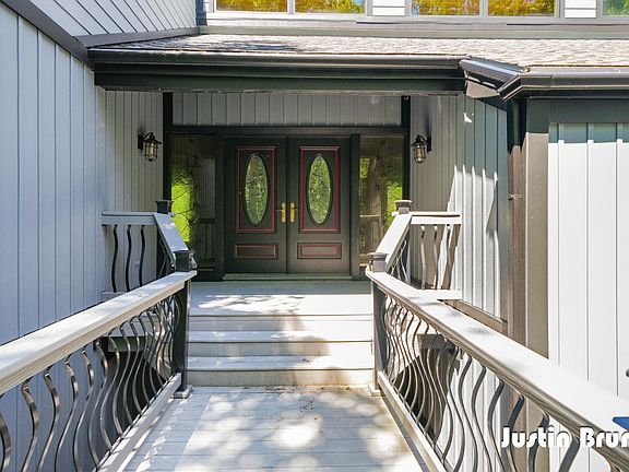 In addition, the home features a three stall garage and a loft for storage. The property features a serene pond and a picturesque waterfall, with abundant wildlife.