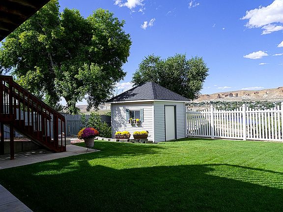 This one-of-a-kind, 4,700 sq ft custom ranch home offers incredible views of the Green River and Castle Rock, plus space for every lifestyle. The main level features vaulted ceilings, a gas fireplace, a Corian kitchen with stainless appliances, and a sunny breakfast nook with custom seating and table. The primary suite includes double closets and private deck access, while the fully finished walkout basement adds a large family room with a pellet stove, wet bar, two bedrooms, full bath, and playroom. Sip your coffee and take in the breathtaking view from the oversized deck or covered patio. The house is surrounded by mature landscaping, a fence, and a fun clubhouse. Updates include new flooring (2019–2020), roof (2016), and Lennox HVAC (2020). The oversized 3-car garage is insulated and ready for projects, with RV parking and a powered shed for extra storage. If you’re looking for a spacious home with custom details, modern updates, and stunning views this home delivers it all. Come see why this seller made it home for a quarter of a century. Hurry to schedule a showing today!