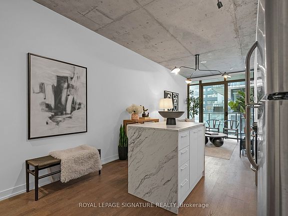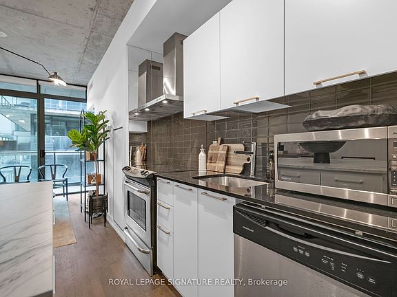 Welcome to Six50 King West Suite 804! Experience urban sophistication in the heart of King West Village, one of Torontos most vibrant and sought-after neighbourhoods. This bright and beautifully designed 1-bedroom, 1-bath residence offers effortless city living with a rare 100 sq. ft. west-facing private balcony perfect for catching sunsets or entertaining outdoors.Inside, you'll find a smart, open-concept layout that maximizes every inch of space, complete with built-in closets, hardwood floors, and a 4-piece spa-style bathroom with a full bathtub. The modern kitchen features stainless steel appliances, stone countertops, and sleek cabinetry, making it ideal for both daily living and entertaining. Perfectly positioned at King & Bathurst, you're steps from Torontos best restaurants, nightlife, boutiques, and fitness studios, plus The Well, Waterworks Food Hall, Farm Boy, and Loblaws. Enjoy unbeatable connectivity with TTC streetcars right outside your door and the upcoming KingBathurst Station (Ontario Line) just next door. Building amenities include a 24-hour concierge, fully equipped fitness centre, outdoor garden terrace, and party room. Includes stainless steel fridge, stove, built-in dishwasher, built-in microwave, stacked washer & dryer, all existing light fixtures, window coverings, and a storage locker.Welcome to a lifestyle of style, comfort, and convenience right in the heart of downtown Toronto.