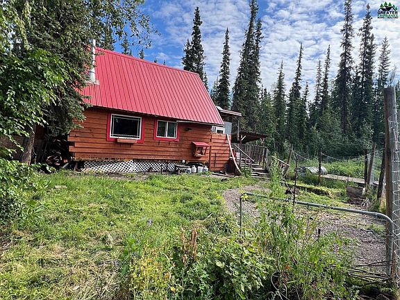 Opportunity knocks with this cute cabin minutes to town. The home is very livable but is ready for some TLC and is priced accordingly. Sold As-Is, no repairs will be done. There is a 1,000 gallon holding tank and a septic system but water and sewer are not currently functioning. Home is heated with a Laser 73 Toyo and a wood stove. Seller only uses 2 cords of wood a year. There is a newer metal roof and some newer vinyl windows. Enjoy ample storage in the arctic entry and back storage room area. Plus there is an additional shed outside. There is an area that previously had a garage that would be ideal to build a garage on again.