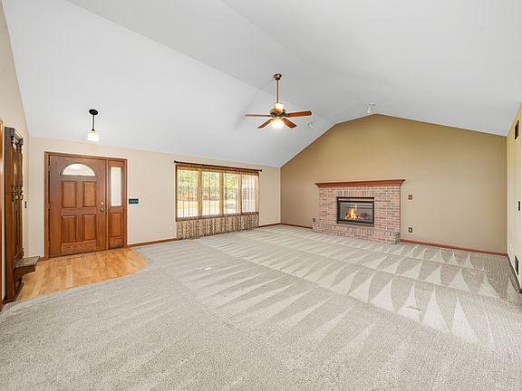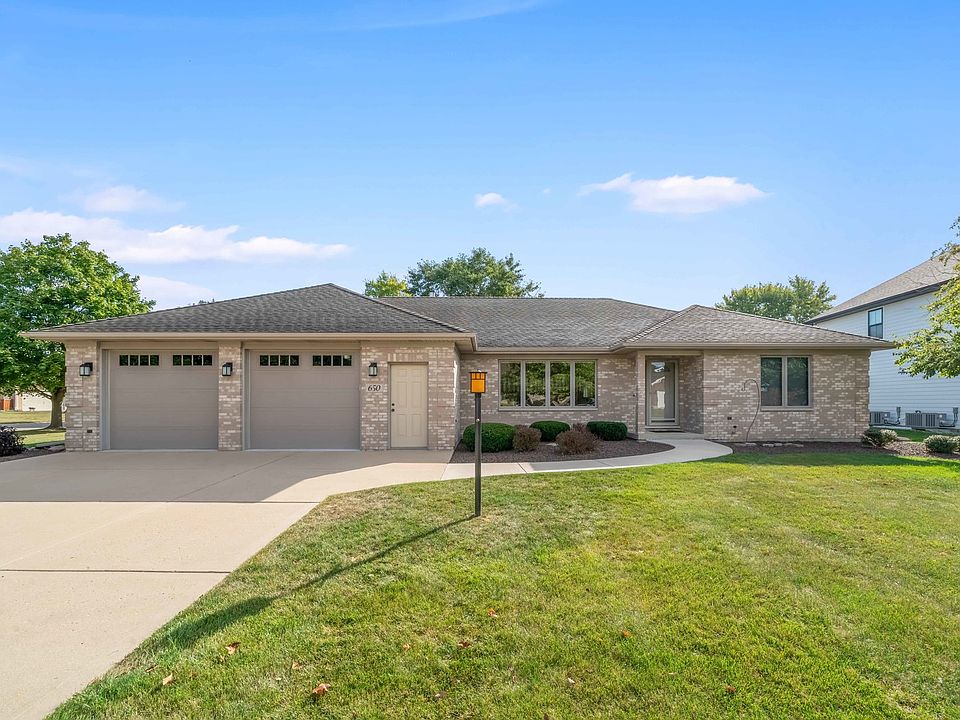 ALL BRICK RANCH LOADED WITH UPGRADES! This spacious all brick home is designed with comfort, function and long lasting quality in mind. Featuring a desirable split floor plan and a spacious great room, the layout offers both gathering space and privacy. The large eat in kitchen/dining room has a breakfast bar, lots of storage and opens to a fabulous sunroom with a patio area creating a courtyard feel so you have privacy while enjoying the large back yard. The master bedroom is a true retreat with a large walk in closet, a dressing room and a separate bathroom area with a curbless tile shower. The secondary bedrooms are very spacious with large closets and they separated with a large hall bath. The laundry has counter space, a sink and a wall oven to help out during your gatherings when you need just a little more oven space. ADA hallways, six panel doors, central vacuum (also stubbed into garage), electric fireplace and whole house generator are just some of the extra features offered. Let's talk about the HUGE 32X28 garage*Can you say man cave*Heated*Epoxy floors*Custom cabinetry*New doors and openers in 2023*Next up is the basement*Deep pour*Partially finished w usable carpeted area measuring 28X20*Full bath*Storage/workshop area measures 38X37 with expansive shelving and it's own furnace! Main furnace and a/c was replaced in 2023l*Back up Sump pump*50 gallon water heater*Rough in for a 2nd basement bath*So much potential to finish off! This exceptional home is conveniently located on a corner lot in the NW section of Hinckley, ideal for commuters. Homes like this do not come around often so call for your showing today!
