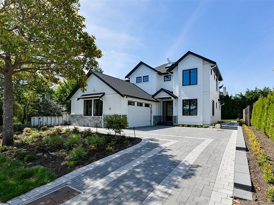 In the heart of South Oak Bay, this newly built 3,528 sq.ft. residence offers contemporary elegance on a landscaped 6,215 sq.ft. lot. Soaring windows, clean architectural lines, and seamless indoor-outdoor flow define this home’s design.The main floor centers around a stunning kitchen with marble surfaces, a large island, walk-in pantry, and custom wine display. Open dining and living areas with gas fireplace create an inviting atmosphere, complemented by a private office, laundry, and powder room. Direct access to a double garage and paved drive adds convenience.Upstairs, the primary suite features a spa-inspired 5-piece ensuite and walk-in closet, joined by two additional bedrooms, one with its own walk-in. The lower level provides a media room, family lounge, two bedrooms, two full baths, and ample storage.A fenced backyard with patio and manicured front garden offer tranquil outdoor living. Steps to excellent schools, shops, and Oak Bay Village, this home delivers modern luxury.