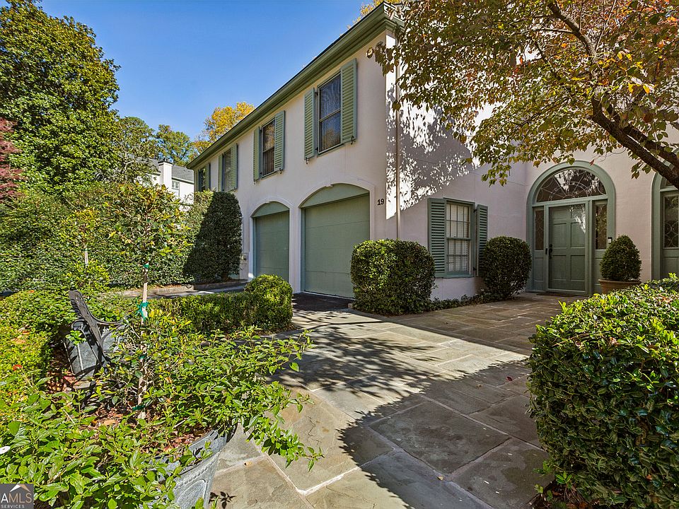 Refined Buckhead Elegance with Elevator and Stepless Living in Mooregate Square. Discover classic comfort and timeless appeal in this three-bedroom townhome located in the exclusive Mooregate Square community-one of Buckhead's most desirable addresses for those seeking sophistication and convenience. Designed for stepless living, this residence features a private elevator serving both levels, providing effortless access to the primary suite. A welcoming foyer with vaulted ceiling features a sweeping curved staircase and elevator entry. Proceed to the gracious, light-filled living room with 10-foot ceilings, classic millwork, and patterned hardwood floors that reflect understated elegance. The traditional masonry fireplace with gas logs is flanked by radius iron doors leading to a stone patio framed by lush landscaping and privacy walls, perfect for morning coffee or evening gatherings. The exterior is hard-coat stucco, and features real wood shutters. The kitchen with granite countertops, built-ins, peninsula, and stainless-steel appliances, provides ample workspace and flows easily to the adjacent dining room with bay window, perfect for family meals or entertaining friends. A convenient powder room completes the main floor. Upstairs, the spacious primary suite includes two walk-in closets plus additional storage. The primary bathroom features a separate linen closet, travertine floor, shower, and counters, with dual sinks and an expansive makeup vanity. Two additional bedrooms are just three steps up and share a full bath, offering flexibility for guests, office use, or hobbies. Permanent stairs lead to a large, floored attic with spray-foam insulation-ideal for easy storage. While perfectly livable and move-in ready, this home also presents an exceptional opportunity for renovation or cosmetic updates to align with today's most luxurious Mooregate Square residences. Tucked within a beautifully maintained setting of just 34 homes, Mooregate Square offers a quiet central wooded greenspace, and a welcoming sense of community-all in the heart of Buckhead. Enjoy proximity to the best of Atlanta's dining, shopping, and cultural destinations with the convenient Moores Mill location between Northside Drive and Northside Parkway. This rare offering combines classic architecture, elevator convenience, and lock-and-go ease in one of Buckhead's most enduring and elegant neighborhoods.