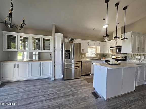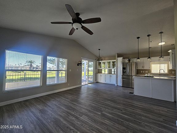 Open floor planUpdated lightingUpdated ceiling fansSunny front patioTile backsplashVaulted ceilingsStainless steel appliances