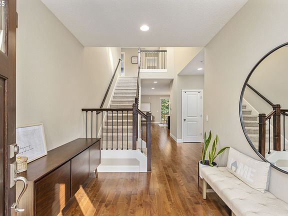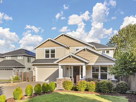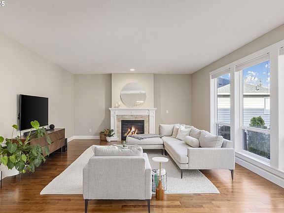 Beautiful and spacious cul-de-sac home minutes from Nike HQ & Costco! Main level features hardwood floors with an inviting entryway, den and open living space with a cozy gas fireplace. Kitchen with quartz counters, comes well equipped for a chef and is great for dinner parties with additional counter seating. Slider to back deck, patio and raised planter beds create a backyard oasis perfect for both relaxing and entertaining. A greenspace with trees behind home offers extra privacy along with a nice view! Upstairs, brand new carpet and French doors leading into the primary bedroom with luxurious bathroom featuring a huge soaking tub, separate shower and walk-in closet. Three additional bedrooms are all generously sized; closets come with custom organizers. Laundry room located on upper level for added convenience. Superb location near Fred Meyer, THPRD Rec Center and easy access to Hwy 26. Also centrally located to elementary, middle and high school!