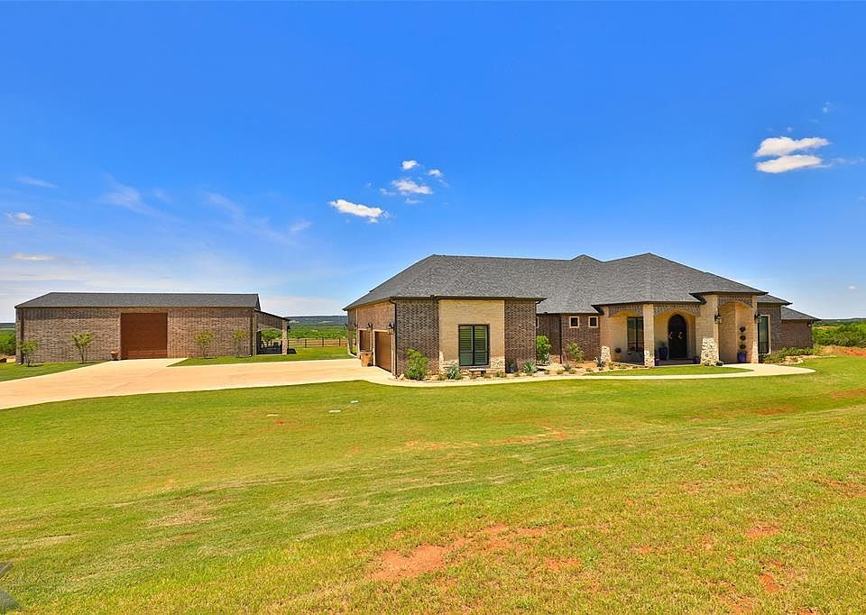 One of a kind luxury Buffalo Gap Estate. Custom built home has unlimited details from top to bottom built by Clift Construction that won 6 of 7 awards in the 2018 Parade of Homes. The property boasts 61 acres of stunning views, tucked into the back of the luxurious South Fork Ranch gated subdivision. Jim Ned Schools. The main house contains 4 bedrooms, 5.2 bathrooms, a study-bedroom, upstairs media room, 2nd living area in north wing, gourmet kitchen, heated pool & spa, outdoor living area with kitchen, outdoor fireplace, and fire features, landscaped. Large shop with 2 garage door bays, living quarters with 2 bedrooms, 1 bath, full kitchen and living area, as well as a large heated and cooled area for storage.