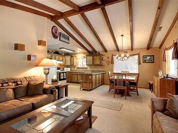 Enjoy the Mountains in this sweet home! Comes furnished and ready to go! This home offers 2 bedrooms, and 1 3/4 bath, vaulted ceilings, open floorplan, a large back covered patio and so much more!