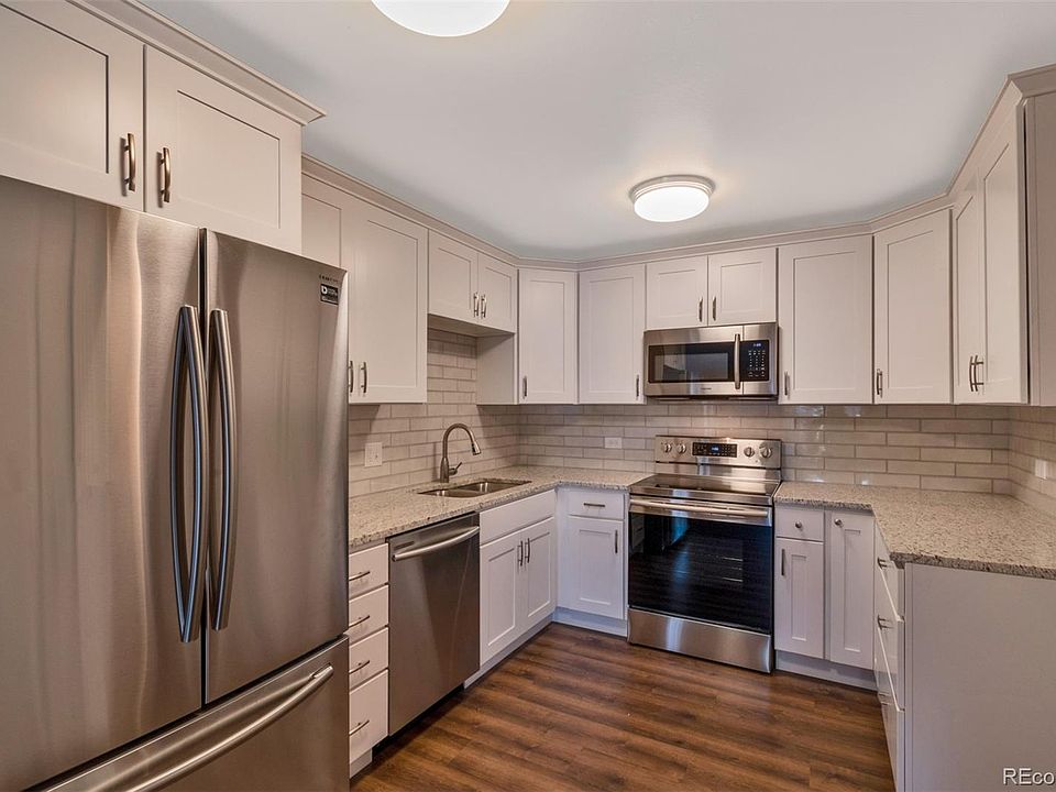 BEAUTIFUL HIGH END REMODEL, in Windsor Gardens, Denver's premier 55+ active adult community, centrally located just across Alameda from Lowry. This 855 sf, 1b/1b unit boasts a fabulous kitchen with ample granite counters and gorgeous white shaker cabinets. All newer stainless appliances and wood-like vinyl, wood-like flooring throughout. Screened, east facing lanai surround with large fir trees. Bathroom is bright, light and sparkling! Bedroom has a reconfigured dressing room area with closets. Detached garage with opener. Included in rent are heat, water, sewer, trash and access to all Windsor Gardens amenities. Tenant pays for electricity, WiFi, phone and TV. At least one tenant must be 55 years of age and all other tenants must be 17 years or older. All residents must complete Windsor Gardens paperwork and attend the WG Orientation Class.