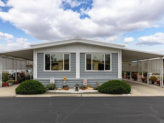 Lovely remodeled home in 55+ community w/ rent control & many amenities and social activities! Open floor plan concept with a beautiful Island Kitchen open to a large great room! Updated Kitchen, Bathrooms, dual pane windows, floors, refinished walls & ceilings, doors, molding, fixtures, exterior paint and so much more! Roof just resealed in 2020. New water heater as of 2020. All newer appliances. Recessed lighting in every room! Main Bedroom has an ensuite Bathroom with an extra vanity. French doors lead out to the porch and patio. Small pet fence can convey if new owner wants it. Palomar Estates East is a very active and social 5* community - check out the photos to see some of the amenities this community has to offer! Convenient to shopping, restaurants, Lake San Marcos, two golf courses at Lake San Marcos, another golf course nearby off Twin Oaks, entertainment, lots of parks and trails, the San Marcos Senior Center, and just a short 8 mile drive to Carlsbad beaches! Monthly space rent is only $569.05 and is under rent control!