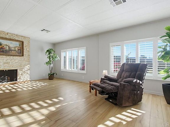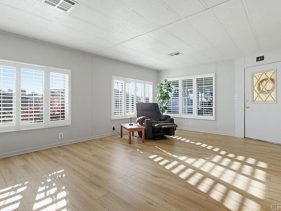 Beautifully updated two bedroom and two bath home in Palomar Estates East. The charming kitchen has solid surface countertops, a tile backsplash, and single basin stainless steel sink. The skylight brings abundant natural light to the kitchen. Both bathrooms have been remodeled with the primary bathroom having a wonderful tiled shower. The attached large California room gives you more space not included in the homes square footage. There is a shed in the back yard to store your extra things. This home is on registration which means NO PROPERTY TAX. Palomar Estates East is a 5 star 55+/35+ senior rent controlled park with many activities and amenities including a beautiful clubhouse, pool, spa, gym, putting green, pickleball courts, and tennis courts. This home is located minutes to Lake San Marcos dining and golf as well as local Carlsbad beaches, shopping, and restaurants.