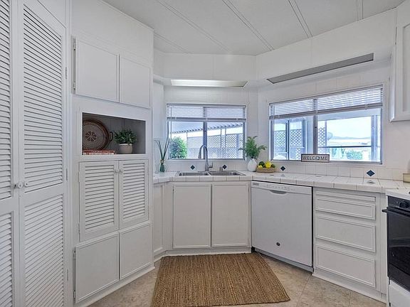Amazing beautiful large lot with great set back*front view of Palomar mountain*palm tree low maintenance landscaping*custom tile/laminant flooring*custom built ins living/dining area*added pantry for extra storage*sunroom for office/craft room/ sitting room* custom remodeled primary bathroom* spacious walk in closet*large workshop/shed storage* long driveway for extra offstreet parking*Palomar east is a rent control park with many amenities*pool spa gym putting green pickle ball tennis courts* close to beaches restaurants shopping medical facilities*