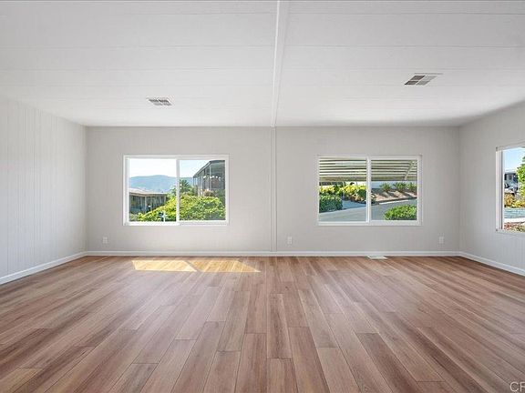Welcome Home! This wonderful turnkey Doublewide manufactured home is waiting for its new owner. Located in the highly sought after Palomar Estates East Park, this active 55+ resort is located just minutes from San Diego beaches and features a clubhouse, pool and spa, dog park and offers an excellent community feeling. This 1440 sq ft home features stunning new luxury vinyl plank flooring throughout, fresh white paint throughout, and stylish new fixtures that elevate every room. The kitchen cabinets have been painted with new hardware. The bathrooms have been refreshed with refurbished showers and tub, offering a clean contemporary feel. Move in ready and full of charm. All measurements are approximate. Buyer and buyers' agent should verify measurements. Owner passed peacefully in the home.