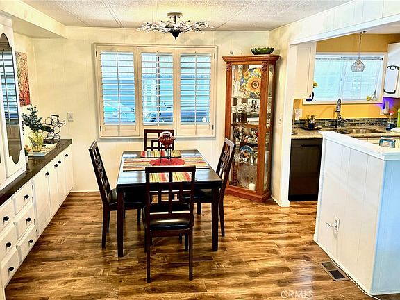Rare three- bedroom and 1 ¾ bath nicely updated home on a beautifully landscaped corner lot in highly desirable Palomar Estate East with no property taxes. Enjoy the views of the San Marcos Hills from your front deck. The home boasts an open floor plan complete with plantation shutters, ceiling fans, newer A/C, laminate flooring, bonus enclosed sunroom, a small shed and two carport parking. The roof and water heater are also newer. The remodeled kitchen features granite counter tops, updated cabinets, a pantry, newer stainless-steel appliances; gas stove, dishwasher, microwave and refrigerator. There is a nice sized utility room with storage and an included new stackable washer/dryer. The primary suite has its own newly remodeled en-suite bathroom with walk in shower and a large walk-in closet. Second full bath is newly remodeled with Jacuzzi tub. Support piers have been earthquake retrofitted.