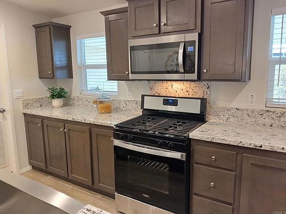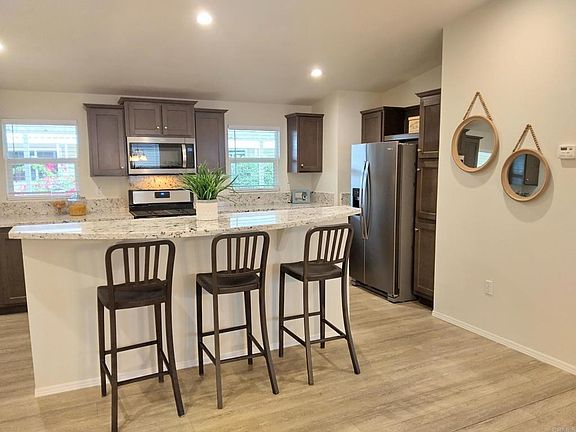 Back on market. No fault of seller. Start your easy, worry-free living in this brand new home - everything is NEW and it comes with a home warranty! You will love the deluxe gourmet kitchen with HUGE walk-in pantry, granite, stainless steel appliances, espresso/beverage station, farmhouse sink, and more! The primary suite features a large walk-in closet, a spa-like master bath with super deep soaking tub, dual sink vanity, and separate large shower. Opposite end of home features 2 more spacious bedrooms and a full bath with dual vanity. Other bonuses include quaint front porch with view, ceiling fans, blinds with upgraded valences, high ceilings, paneled doors, a/c, large shed, mature fruit trees, and more! Giant corner lot with VIEW of hills! Great location close to everything! This is a must-see stunner in an active adult 5-star community with fun activities, heated pool, tennis courts and more! Land lease just $597/ month. Call Now! Serial FLE220CA22-41013A/B