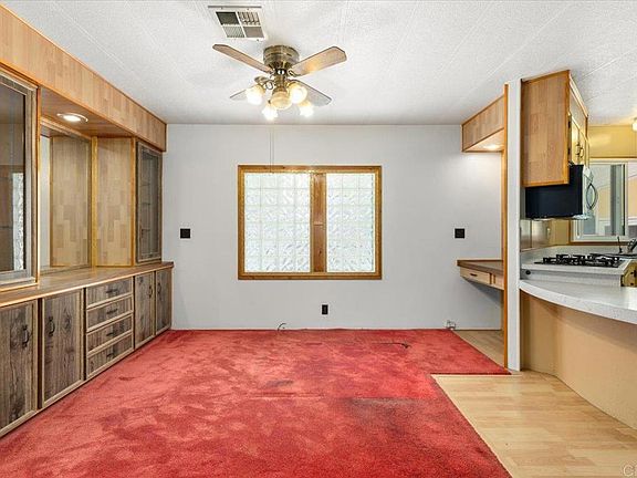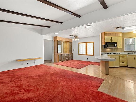 3 bed / 2 bath located in a 55+ rent controlled park with NO property taxes (home is still on HCD registration) The unique features and layout of this property are perfect for multi-generational families (55+) or live-in caregivers or roommates because there are two driveways, providing plenty of parking, two large storage sheds, and the bedrooms are separated on opposite ends of the home for added privacy. A barn door can be closed to completely privatize the front of the home where the two guest bedrooms and a bathroom are located. The Primary Bedroom is located at the back of the home and has a walk in closet an ensuite Bathroom with double sinks. Home has been updated with drywall and 3 solar tubes. Very open and spacious Living room, Family room, and Dining room area. EZ care yard with two large storage sheds. Palomar Estates East is a very active and social 5* community - check out the photos to see some of the amenities this community has to offer! Convenient to shopping, restaurants, Lake San Marcos, two golf courses at Lake San Marcos, another golf course nearby off Twin Oaks, entertainment, lots of parks and trails, the San Marcos Senior Center, and just a short 8 mile drive to Carlsbad beaches! Monthly space rent is only $543.81 and is under rent control!