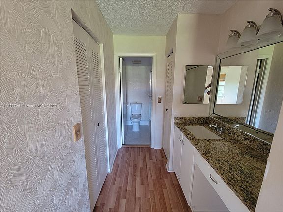 Beautiful 2/2 condo in a 55+ gated community in Pembroke Pines. This property features walk in closet, granite counter top with wooden cabinetry, and a balcony. Community amenities include a clubhouse, fitness center, golf course, huge community swimming pools. Century Village community has bus transportation inside the complex that transports residents to local shopping center, mall, medical offices, extra parking space and much more. Condo association includes Internet, cable, water, and trash removal. HUD will prosecute trespassers. This property is being sold "AS IS", Property is IE (Insured Escrow ).