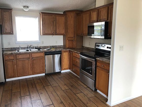 This house has been remodeled in recent years. It has a metal roof, all stainless steel appliances, and new flooring throughout the home. This house is located on a private farm with a gated entrance. Also includes a covered parking area and fenced in back area for pets (upon pet approval and pet fee required). Trash pick up, water, and basic lawn care is included with your rent. This home has 3 bedrooms (3 walk-in closets), 2 full bathrooms, an eat-in kitchen, separate laundry room (washer and dryer hookups), a garden tub and dual sinks in the master bathroom. Covered front and back porch along with a ramp for handicap accessibility (all doors are wide enough for a wheelchair as well). The backyard features a shed and fenced in area for pets. We are open to pets with approval only and a per pet fee is required. One year lease required. Trash, water, and basic lawn care included