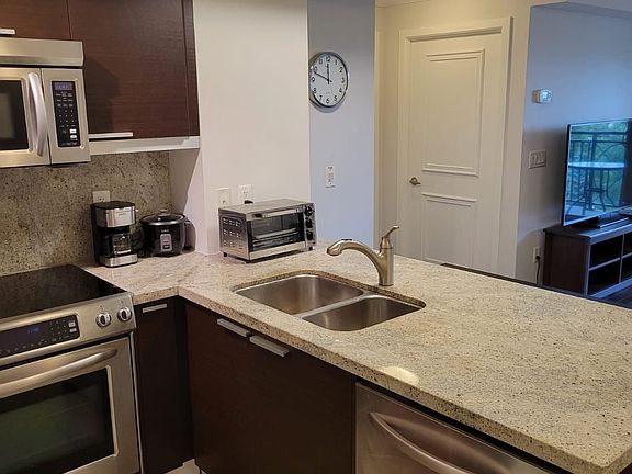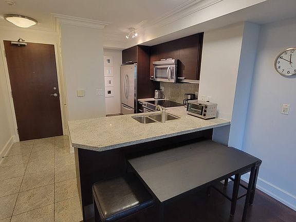 Short term furnished unit, great location, luxury, fully furnished one bedroom unit, walking distance to subway station, Shops, Bus stops & restaurant, easy access to highway 401 , 404. Short term lease min 4 months. Extras: Stain steel appliances including Stove, Fridge, B/I Dishwasher, B/I Microwave, washer/ Dryer. Window covering. absolutely No smoking allowed in the building. very clean and move in condition,