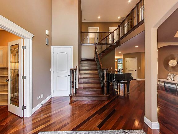 Welcome to your dream home! This stunning custom-built residence is nestled on a sprawling 100 x 500 private lot, offering you both space and privacy in a serene setting. With over 4,400 square feet of thoughtfully designed living space, this home is perfect for fulfilling all your needs and desires. As you drive up to the property, a grand circular driveway greets you, leading to the impressive entrance of this magnificent home. Step inside and be welcomed by a two-story foyer that sets the tone for elegance and hospitality. The separate dining room provides an ideal space for formal gatherings, while the private office (or 5th bedroom) with French doors offers an inviting work-from-home environment. The open-concept layout is perfect for entertaining, highlighted by a grand 14-foot vaulted family room adorned with wall-to-wall windows that flood the space with natural light. Cozy up in front of the stunning stone fireplace on cooler evenings, making this area a warm and inviting focal point. For the culinary enthusiasts, the chef's kitchen is a dream come true, featuring generous counter space, a separate island with additional seating, and plenty of cabinets for all your storage needs. Retreat to the luxury primary suite, where a spa-like bathroom awaits, complete with a walk-in shower, a relaxing jacuzzi tub, towel warmer, and a double vanity. Don't miss the exquisite walk-in closet, meticulously organized for all your wardrobe essentials. Convenience meets functionality with a main-level laundry room positioned just off the garage, providing an excellent drop zone for daily life. Moving to the second level, you'll find two spacious bedrooms connected by a stylish Jack-and-Jill bathroom, boasting a double vanity. An additional bedroom with a private full bath completes this level, ensuring comfort for family and guests alike. Venture into the full basement, brimming with potential for additional living space. With roughed-in plumbing for a full bathroom, this expansive area can easily transform into a recreation room, gym, or personalized storage haven. Plus, enjoy direct access to the heated four-car garage, adding to the home's practicality. Step outside to discover a picturesque lot with lush landscaping, a spacious patio equipped for a hot tub, and a shed offering electrical service and ample storage options. This home features a state-of-the-art in-floor radiant heating system throughout, including garage floors, ensuring warmth and comfort in every corner. Constructed with durable Insulated Concrete Forms (ICF), it guarantees energy efficiency and longevity, making this residence a solid investment for years to come, with exterior walls crafted from solid concrete for superior protection and insulation. Conveniently located just steps from Palatine Hills Golf Course and close to Deer Park, where shopping, restaurants, and vibrant nightlife await. Enjoy easy access to Metra in downtown Palatine, enhancing your connectivity to entertainment and beyond.