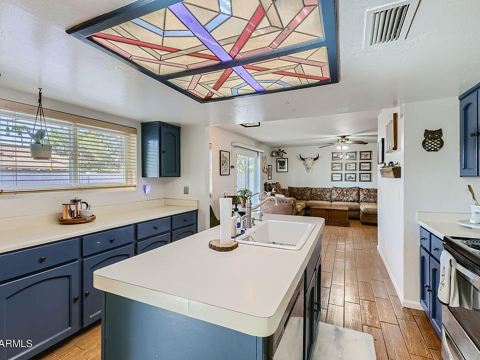 ...Mountains in the heart of the City. This BEAUTIFUL 2 story, 4 bed/ 3 bath home (1 bed and 1 bath downstairs) is sure to impress the pickiest buyers. Wood Look Tile throughout the lower level, Sunken Formal Living room with Fireplace and tall ceilings, Formal Dining w/sliding door to the Backyard, Spacious Kitchen with LOADS of counter space, upgraded appliances and STAINED GLASS feature. Whole house water filtration system. Comfortable FamilyRoom which is flooded with natural light, guest bedroom & bathroom complete the lower level. Upstairs features the OVERSIZED Primary Bedroom w/Sliding door to a cozy Balcony (perfect for watching the sunrise while enjoying morning coffee) Large Closet & En Suite Bathroom complete the Primary. There are 2 Guest Bedrooms (1 is currently being u Dressing Room) the other has a Walk-in Closet with built in organization, Wood Blinds & Ceiling Fans throughout, Large backyard with 2 Covered Patios, Gorgeous Parks & Green Belts surround this area but also giving GREAT access to the Loop 101, 51 and I-17, Excellent shopping & restaurants nearby.