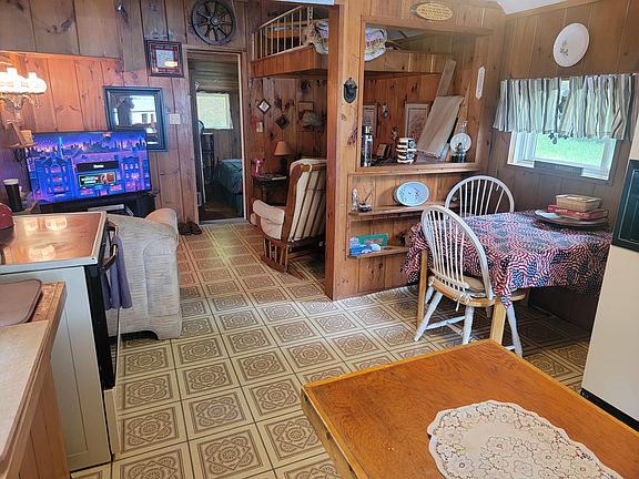 This is a seasonal camp/cottage with just enough creature comforts but not TOO many, you'll truly feel it's a 'get-away'! The location is fantastic, beautiful water frontage, perfect for swimming and boating. Enjoy those dreamy 3-season sunsets, evenings, and campfires by the shoreline, and morning coffee in the bright and warm glassed in sunroom. The main camp offers 1 bedroom and the bunkhouse gives plenty more sleeping space plus a full bathroom. The camp is modest but the setting is grand, plus it comes complete and move in ready with all furnishings inside and out, everything is there for you to enjoy lake fun on Day 1, including a dock, canoes, paddleboat, and more. The best part of summer is yet to come, don't wait another minute!