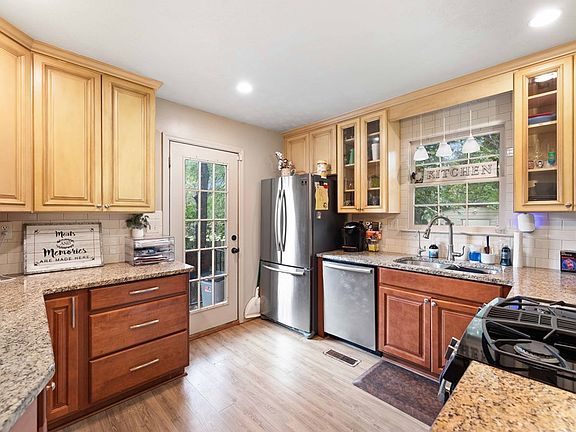 4 BD 1.5 BA split-level home with lots of character. Entry foyer opens into living room, which could become an office, or a playroom. The kitchen has granite countertops, gas range and peek-thru cabinets, LVP flooring. Three spacious bedrooms upstairs, including the master. One bedroom downstairs, as well as a separate den with fireplace feature. French doors open into large fenced backyard. This is a well established neighborhood, with schools, and convenient dining and shopping.