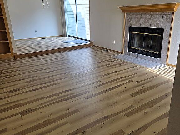 Backs up to lake and has green yards for kids or just pleasant, private viewing. Lots of new and updates. New appliances and flooring, new granite throughout. Fireplace. Private patio off an eat-in kitchen. Living room up and a large family room with a bedroom and 1/2 bath down. There's another area downstairs that could be an additional bedroom very easily. Downstairs is a great, big, private hangout area for kids. Walk-out basement to lake. One car garage with more parking in driveway and parking areas that are a short walk. Very nice. End unit, so very private. Maintenance free, NO MOWING. Community also provides trash and snow removal services. Great neighborhood, community pool across the street and clubhouse included. Safe and secure. Close to everything. Home is vacant and easy to show with lockbox. Brokers welcome.