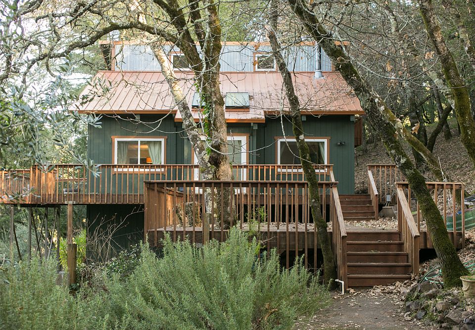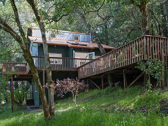 A private road lined with oak trees is the gateway to 10.819 acres of Serenity. This 3 bedroom 2.5 bath home nestled in ultimate privacy is a newly updated, unique home that brings the outside in with an abundance of windows, skylights and high ceilings, drenching each room with natural light. The updated kitchen with granite counter tops and slate floors opens to the dining area and living room with fireplace. New carpet, paint and septic system