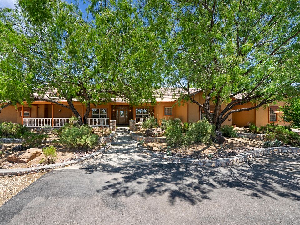 UPPER VALLEY DREAM! 26 acres of land & horse farm with a wonderful, custom built home located on iconic Gato Road. With 7.81ac in TX and 18.23ac in NM the beauty of this property is endless ~ 16 horse stalls, 3 riding arenas, 2 tack rooms, horse shower facilities & 2 barns (a separate foaling barn!) all surrounded by majestic mountain views & brilliant sunrises. Some of the acreage is in crop production with accessible wells & irrigation rights, and of course plenty of space for horses to roam. The main home is grand with an incredible family room that opens up to the equally supersize gourmet kitchen, complete with unmatched views from the wall of windows. The master is so spacious, with its own sitting area & fireplace ~and bathroom with a walk-in closet that will amaze you. Yes, the owners special touches are seen throughout this exceptional home. As a wonderful addition to this marvelous property there is a separate 1200sf house, built in 1935, with 3 bedrooms/1 bath, plus a bonus out-building & workshop