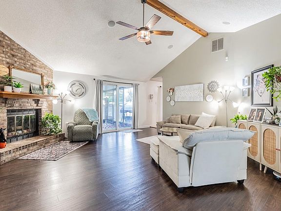 Discover this stunning eastside ranch home in the Eastland Estates subdivision — a true gem filled with luxurious upgrades and modern amenities! Step inside through the inviting front door into a spacious great room featuring soaring vaulted beamed ceilings, a charming brick wood-burning fireplace with blowers, brand-new flooring, and fresh paint, creating the perfect ambiance for relaxation and entertaining. The kitchen is a dream come true, boasting beautiful cabinets with soft-close drawers, pull-out shelves, a lighted pantry, and elegant granite countertops. The space is enhanced with new tile flooring and fresh paint, complemented by a cozy eat-in area with a built-in island and a large bay window that fills the room with natural light. Convenience is key with a dedicated laundry room, a stylish half bath, and direct access to the two-car garage, which features a newly painted floor. To the left of the great room, you'll find three comfortable bedrooms and a luxurious full bath. The primary bedroom offers a serene retreat with a tray ceiling, while the bath showcases a double vanity with granite countertops, beautiful shower and wall tile, and elegant tile flooring—accessible from both the hall and primary bedroom via pocket doors. Enjoy outdoor living in the bright sunroom or screened-in porch, with windows that can be removed during summer months to create an open-air haven. The backyard is designed for privacy and relaxation, featuring a new wooded privacy fence, an uncovered patio, a cozy firepit, and a storage shed. Recent updates include new windows (2025), a newer HVAC system (2022), a newer water heater (2022), gutter guards (2024), all new appliances (refrigerator, range, microwave, and dishwasher in 2024) included in the sale, a 220 outlet in the garage, and a 200-amp electrical service. For added peace of mind, the seller is offering a comprehensive home warranty. Located close to shopping and vibrant east side amenities, this beautifully upgraded home won’t last long.