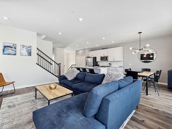 Fabulous end unit offers an abundance of natural light from windows on 3 sides of the home. The kitchen offers soft close white cabinets, stainless steel appliances, a large center island and quartz counters. Relax in the open family room next to the electric fireplace. The main floor also offers a large flex room for office space or additional living space. Large owner's suite with walk in closet, Two additional bedrooms and laundry on upper level. The lower level has a finished recreation room for office space, or additional living room. When compared to other prescott models this home offers soft close cabinet hardware, upgraded door handles, fireplace mantle, and main floor bathroom vanity. Laundry room upper cabinets installed for extra storage. Oversized 2 car garage with overhead storage.