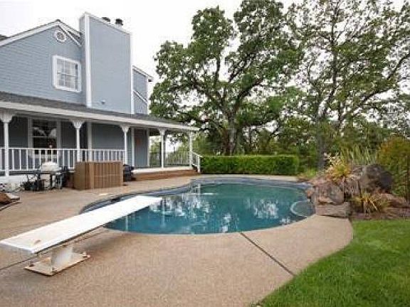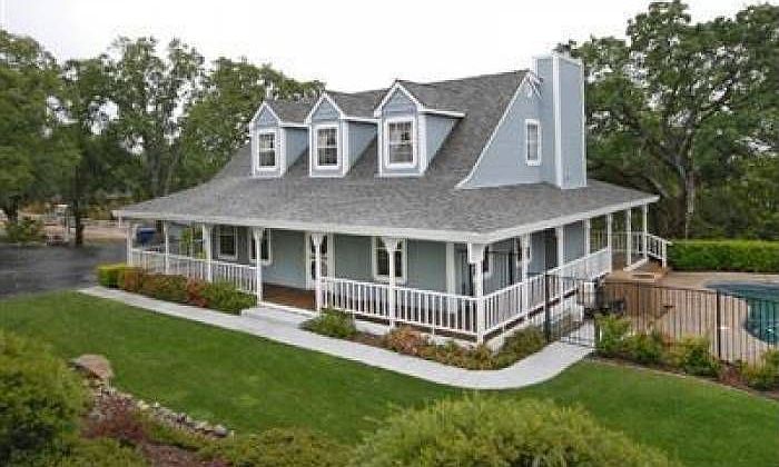 Adorable American Farmhouse in friendly neighborhood with wrap-around porch, on 5 acres, fully fenced and cross fenced. Barn, Chicken house, Swimming pool, RV parking port, Horse stalls, 2 bdm guest quarters, Lots of Parking, Circular Drive, Professional landscaping, Views and Acreage! Built of 2x6 construction with classic farm character throughout! A dollhouse with upgraded kitchen & bathrooms, granite counters, oak hardwood flooring, custom draperies, crown moulding & 3 fireplaces. County-maintained road. No HOA/Mello Roos!