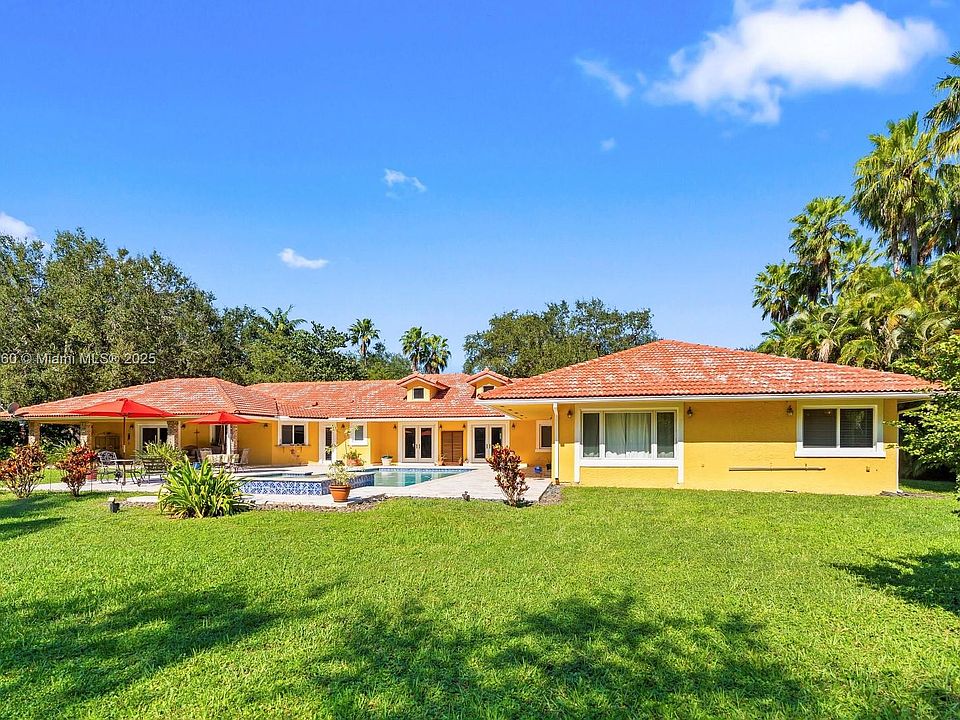 Elegant Pinecrest estate on a lush, private acre with a resort-style pool and expansive park-like backyard. Nestled on a quiet street, this 5BR/4BA home features soaring wood-beamed ceilings in the living and dining rooms, a serene primary suite with walk-in closet and spa-inspired bath, and a classic kitchen and family room that open seamlessly to the outdoors. The beautiful pool and patio are surrounded by vibrant tropical landscaping—perfect for entertaining or peaceful retreat. Three-car garage and laundry room complete this timeless home.