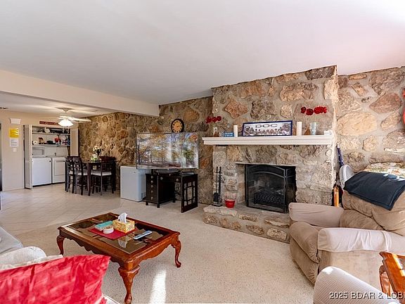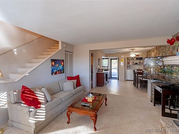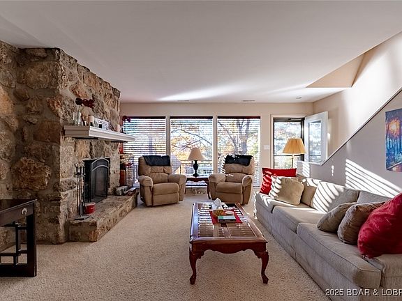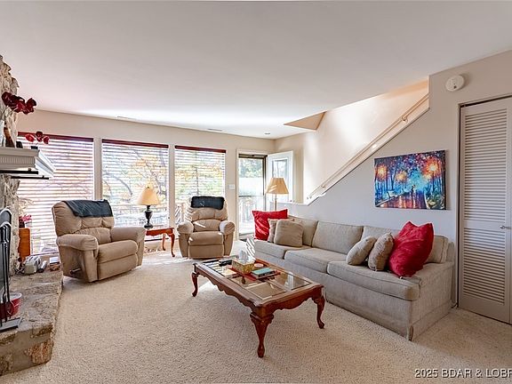 Enjoy lake living without the lakefront price tag in this inviting 3-bedroom, 3-bath condo nestled at the end of a quiet cul-de-sac. Surrounded by nature yet just minutes from Osage Beach dining, shopping, and entertainment, this location offers the perfect blend of privacy and convenience. The open main level features a spacious living area with a striking natural Missouri stone accent wall and electric fireplace, creating a warm, comfortable homey feel. The dining area includes a convenient laundry closet and flows effortlessly onto a large deck with seasonal lake views—an ideal spot for morning coffee or casual gatherings. Upstairs, the vaulted ceilings enhance the bright layout, keeping all bedrooms together for added convenience. Two guest bedrooms offer access to their own private deck, providing a peaceful retreat. The lower-level deck offers an additional space for entertaining, grilling, or simply relaxing outdoors. Whether you’re seeking a full-time residence or a weekend getaway, this condo delivers easy, low-maintenance living with great amenities—including a community pool, pickleball court, and tennis court. A fantastic opportunity in an unbeatable location!
