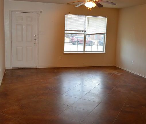 Take a look at this stunning brick duplex located in Bridgewood Addition. Walk inside to an open living area which leads to the kitchen, hallway and bedrooms. In addition to the scored concrete stain floors, it has a refrigerator, a range, a vent hood, and ceiling fans! The bedrooms are in the back of the property to give you the privacy you need. Also included is a one car garage and shared back yard! Call and schedule a viewing today!