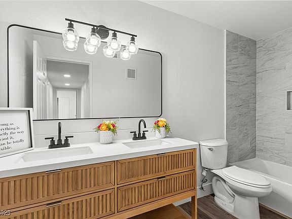 Fully renovated 3BD/2BA condo with a rare floorplan in a community near Summerlin and Desert Shores! This beautifully updated home features designer bathrooms and vanities, granite countertops, new cabinets, and luxury vinyl plank flooring throughout. The open and functional layout offers excellent flow and comfort. Enjoy a private balcony with serene views of the community pool. Conveniently located near the community entrance and just steps from the pool, spa, and clubhouse. Close to shopping, dining, parks, and with easy freeway access to US-95 and Summerlin Parkway. Move-in ready and perfectly situated in a desirable Las Vegas location!