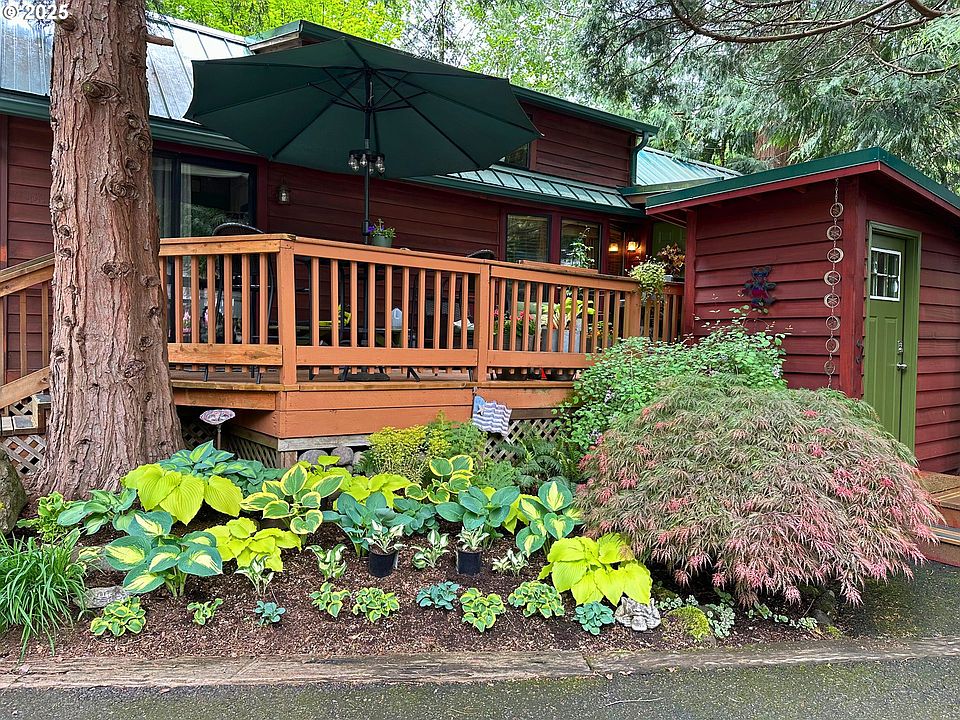 As the winter season kicks off, it is the time to grab this wonderfully maintained cabin. Just a look at the inside and out of the cabin anyone can see the love and care that it has received over the years. There are so many winter and summer recreational activities nearby. This cute cabin has a lofted ceiling and ceiling fan to keep the heat moving back down into the main part of the home. The loft space adds room for an additional bed, playroom or office. The home comes with a deck off of the primary bedroom which wraps around to the back deck with a wooded view. There is a shed and one parking space that comes with the home. Mt Hood Village provides laundry facilities; recreation center and is full of hiking trails and tons of nature: Perfect for the simple life! This is a gated community. Buyer must apply and be approved by the park prior to closing. There is a land lease for this unit with park rules not a HOA.