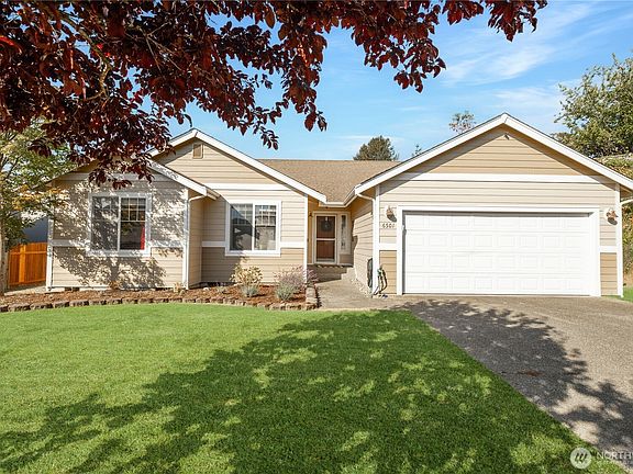 Tucked away on a generous flag-shaped lot, this beautiful 3 bed, 2 bath rambler offers privacy with a thoughtfully designed interior. The open-concept layout features kitchen with island and adjacent dining area, opening to the backyard through a patio door, perfect for indoor-outdoor living. The living room's vaulted ceilings & cozy fireplace creates a welcoming atmosphere. The large primary suite includes walk-in closet, ensuite bathroom, and private door leading out to the patio. The home is set apart from the rest of the development, bordered by a tranquil natural buffer that enhances the sense of seclusion. The exterior features a long semi-circular driveway, RV parking, and generous backyard. You will truly love to call this home!
