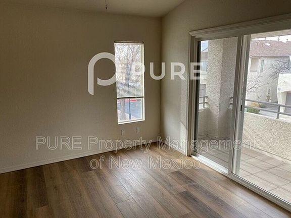 Nice 2 Bedroom, 2 Bathroom, 985 Sq Ft. Condo in Gated Community. Living area is on second floor. Kitchen includes Refrigerator, Gas Stove, Built-in Microwave and Dishwasher. Primary bedroom and living room have access to balcony. Primary bedroom has large walk-in closet. Single Car Garage with Stackable Washer/Dryer Included. Tenants have access to great pool and clubhouse. Refrigerated Air. Conveniently located on San Antonio NE near Shops and Freeway.
