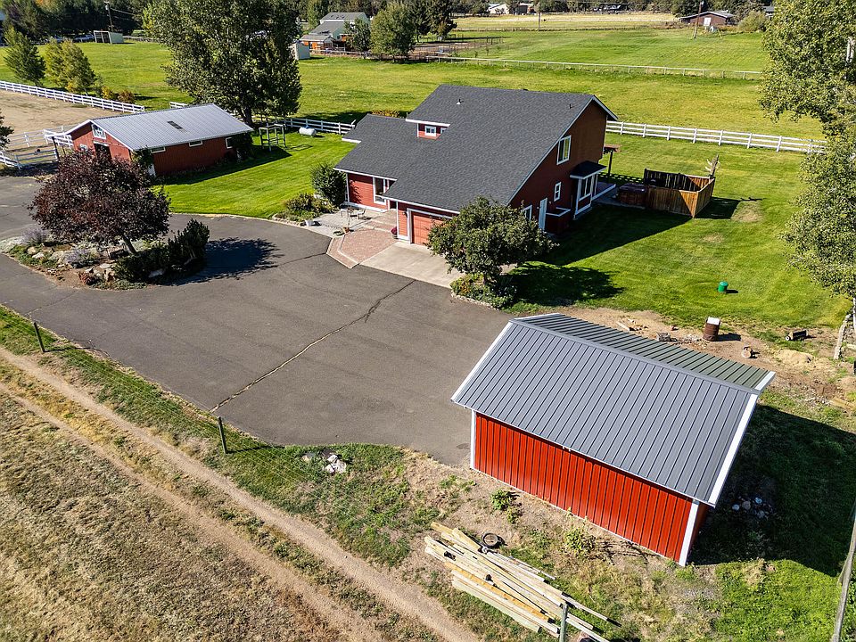 5 acre irrigated Tumalo horse property. 3 stall barn with run outs, tack room, hay storage, power and water. Arena, Two loafing sheds in pasture. vinyl and top rail wire fencing and machine shed.