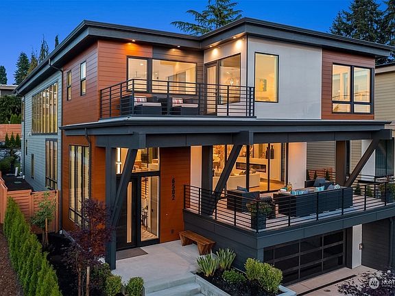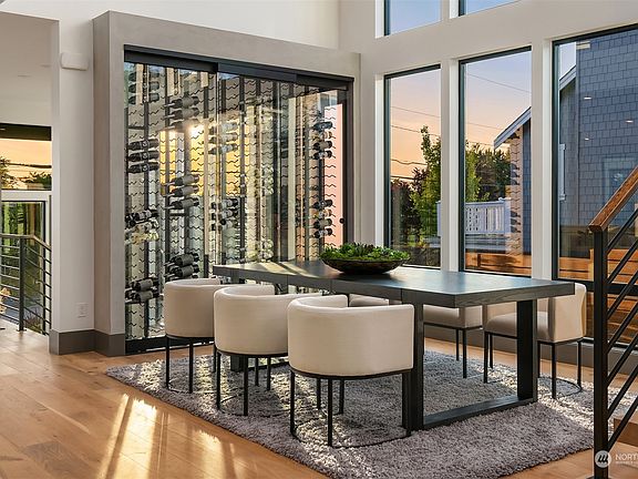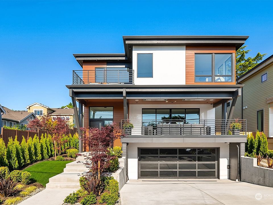 Distinctive custom design + luxury living in this stunning new contemporary Kirkland home by premier builder Serena Construction. 5 BD, 5 BA, 5,002 SF home on 8,100 SF lot set in coveted Houghton near CrossKirkland Corridor, Houghton Center, Lake WA Waterfront & Downtown. Main level great room w/expansive windows, vaulted ceilings, engineered wide plank hardwood floors. Living area w/100” high tech fireplace, formal dining w/ glass wall wine cellar. Gourmet kitchen offers 10 ft. quartz waterfall island, SubZero Fridge, Wolf Range & Zonavita cabinets. Primary w/ en suite & private view deck. Large Rec & Media rooms. 356 sqft west-facing deck w/Infratech heaters & porcelain pavers. Generously sized backyard. 4-car tandem garage w/EV charging.