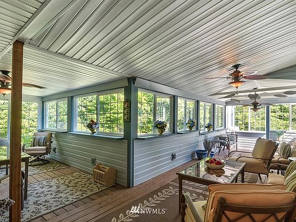 Amazing location & perfect for entertaining! This beautiful home welcomes you with a fully enclosed sun porch entry, full wrap around patio with deck, 10 fruit trees, & your own private oasis. Unbelievable sunroom with solar has huge island & kitchen with farm sink & double ovens! Featuring tons of storage, built-ins, ceiling fans, skylights, cork flooring, a loft, & many updates. Large master with walk-in closet, lower bath with sauna & jetted tub, large garage, tons of parking, & A/C!