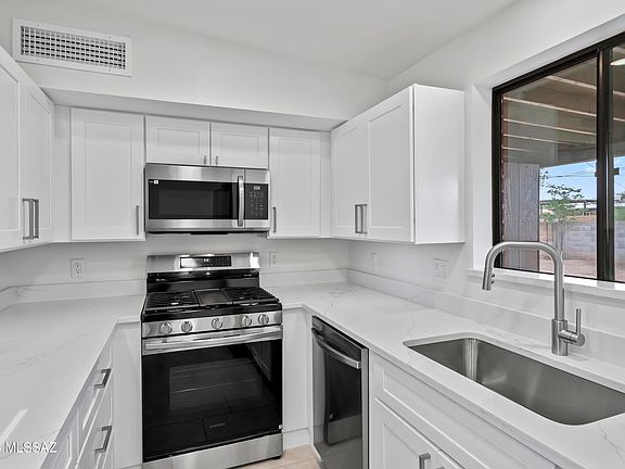 Welcome to this beautifully remodeled 3 bedroom, 1 bath home price range of $259,900 - $279,900 in the highly sought-after Terra Del Sol neighborhood of Tucson, Arizona. The home features a brand-new kitchen with stainless steel appliances, quartz countertops, and modern tiled flooring, perfect for today's lifestyle. Modern full bathroom with tub and shower. A new central AC unit ensures year-round comfort and energy efficiency. New water heater. Roof approximately 3 years old.Enjoy the outdoors with a spacious covered patio overlooking an extra-large backyard full of possibilities--ideal for entertaining, gardening, or adding a pool. This updated home combines style, comfort, and potential, making it a perfect choice for homebuyers looking in Tucson's desirable east side.