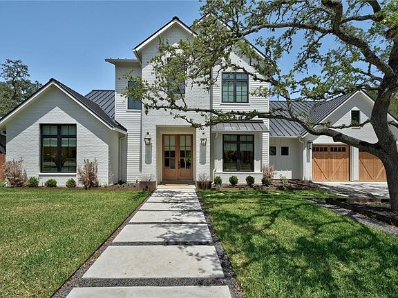 Located on a quiet cul de sac in the Lost Creek neighborhood of West Lake Hills, this stunning custom modern farmhouse, built in 2020, is filled with warmth and casual sophistication. Modern touches can be found throughout the home such as Restoration Hardware lighting and fixtures and 10" French White Oak flooring. The foyer welcomes you into an open living space, dining room, kitchen and steps out to the pool and cabana. The bright and inviting kitchen features Thermador appliances and overlooks the breakfast nook and cozy living room complete with fireplace and built-in storage. A beautiful walk-in butler pantry completes the spacious kitchen. The stunning home features 10' and 11' ceilings throughout, a dedicated gym, half bath, and oversized laundry room adjacent to the kitchen. The large and cozy master suite includes dual closets, beamed ceiling. The master spa bath features dual vanities, large soaking tub, and steam shower for complete relaxation. An office - or 5th bed - and additional bedroom suite are down the hall on the main level. Upstairs features a second living space and two additional bedroom suites as well as walk in bonus flex space, perfect for another office, play room, or storage. The home offers Sonos surround sound throughout. Outside oasis features a custom, oversized Cascade pool and jacuzzi, outdoor kitchen and cabana, turf grass for easy maintenance and sport court, as well as a screened porch. The two car garage has additional space for golf cart parking. The home is located just 10 minutes to downtown, Austin and less than 1 mile to Lost Creek Country Club, and in Eanes ISD.