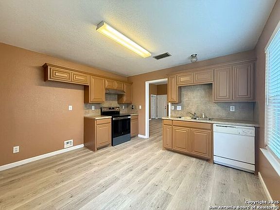Welcome to 6502 Ithaca Forest-a beautifully renovated 3-bedroom, 2-bath rental offering 1,314 sq ft of comfortable living in a quiet Northeast San Antonio neighborhood. This charming two-story home features fresh updates throughout, including modern flooring, neutral paint, and upgraded fixtures. The main living area is bright and open, centered around a super cute fireplace that adds warmth and character. The kitchen offers generous cabinet space and flows seamlessly into the dining area-perfect for everyday living or entertaining. Enjoy the rare convenience of three full bathrooms, ideal for families or roommates. The spacious master suite includes a private bath with a separate garden tub and walk-in shower. All bedrooms are well-sized with ample closet space. Step outside to a large backyard, great for relaxing, entertaining, or pets. The home also includes a two-car garage and full driveway. Located just off IH-35 N (exit O'Connor Rd), with easy access to Randolph AFB, Loop 1604, shopping, and dining. Pet-friendly with approval. Don't miss this move-in ready gem-schedule your tour today!